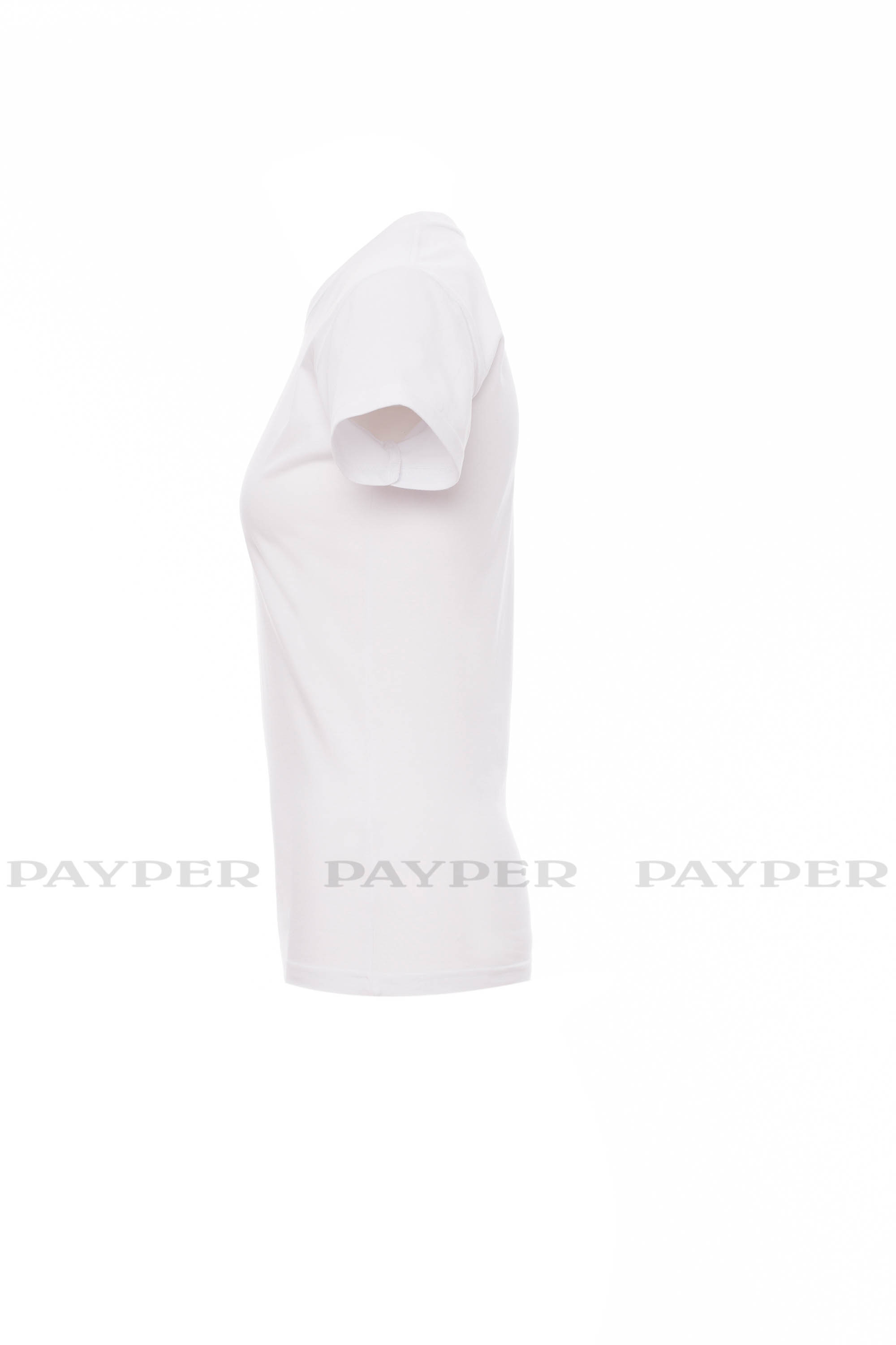 Tee-shirt cintré pour femme, encolure en V et manches courtes, col en bord côtes mixte spandex de 1,5 cm avec couture rabattue sur le devant, ruban de renfort d'épaule à épaule dans couleur en contraste sur le col, coutures stretch, couture latérale