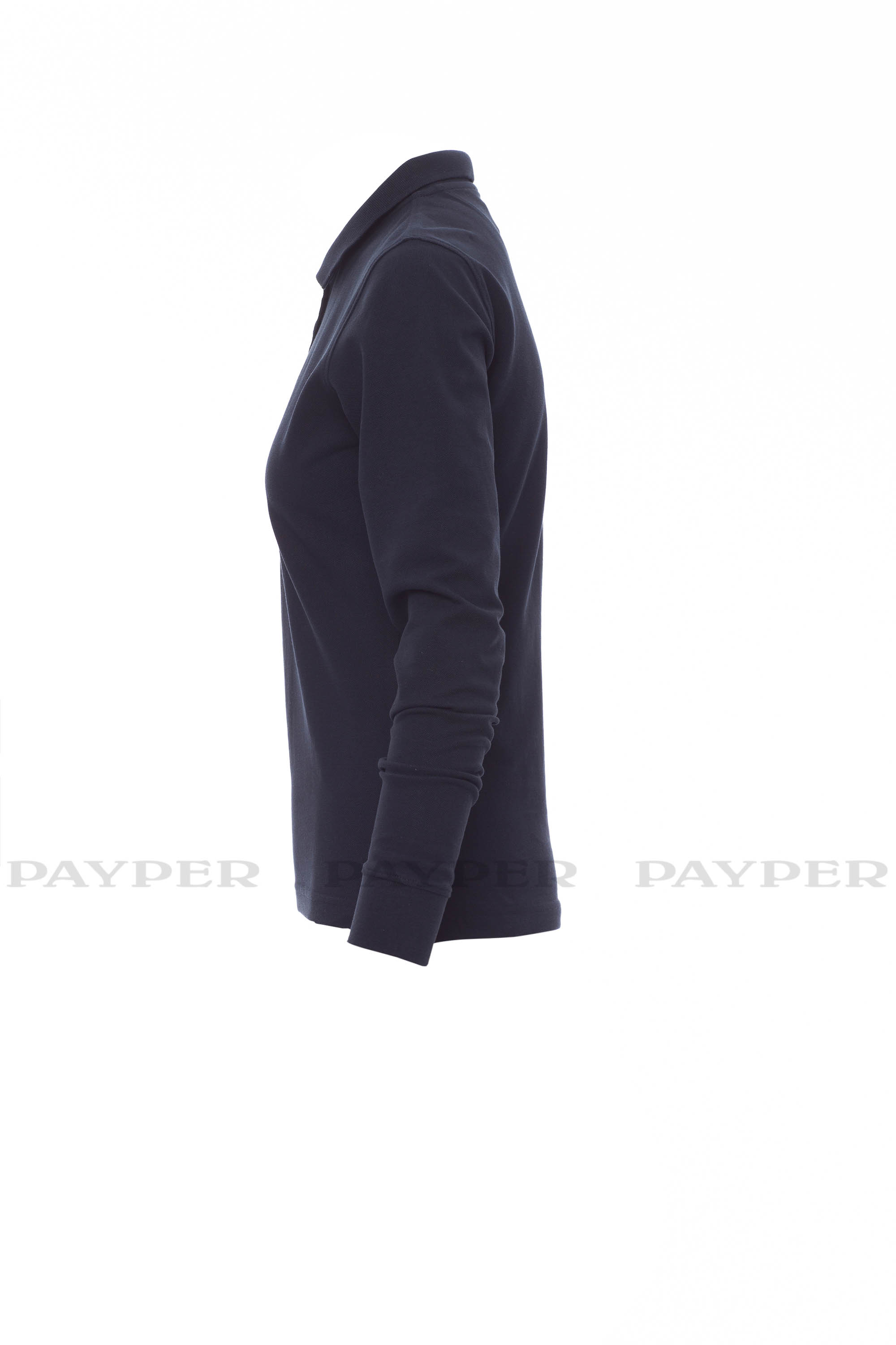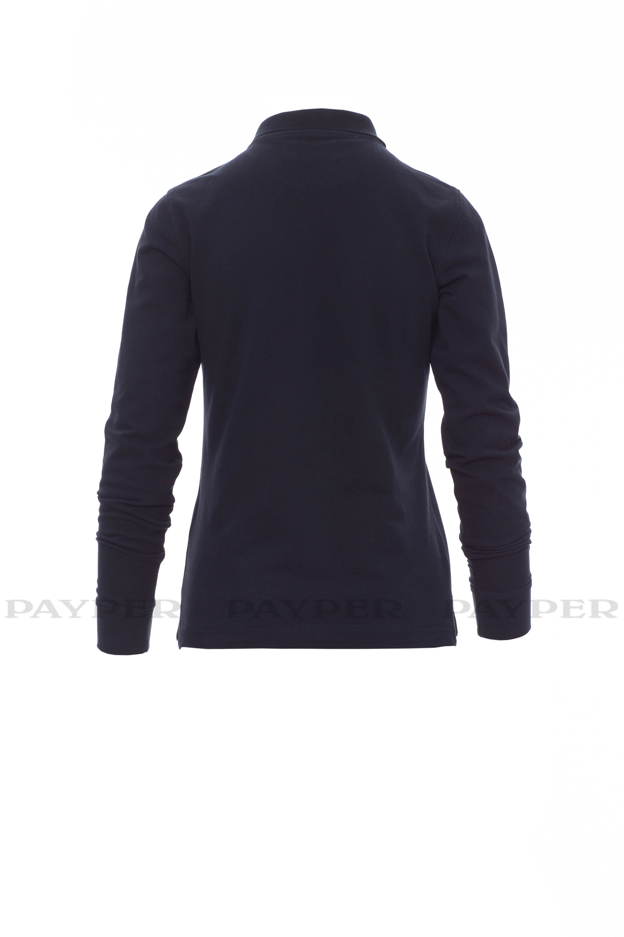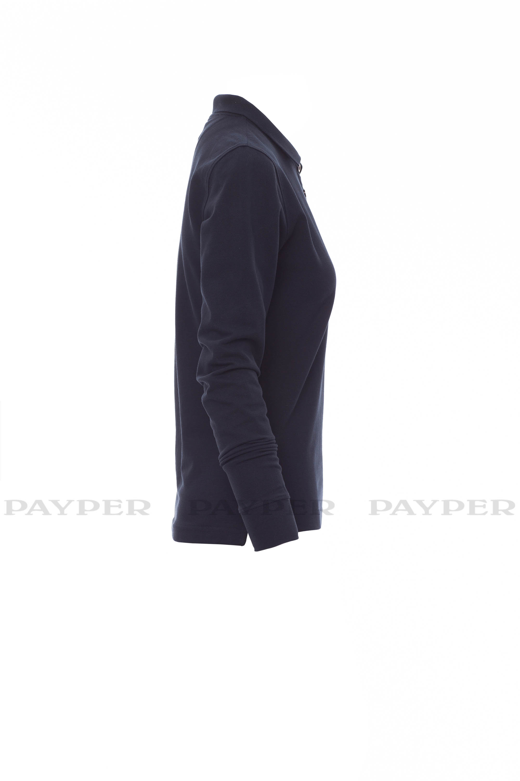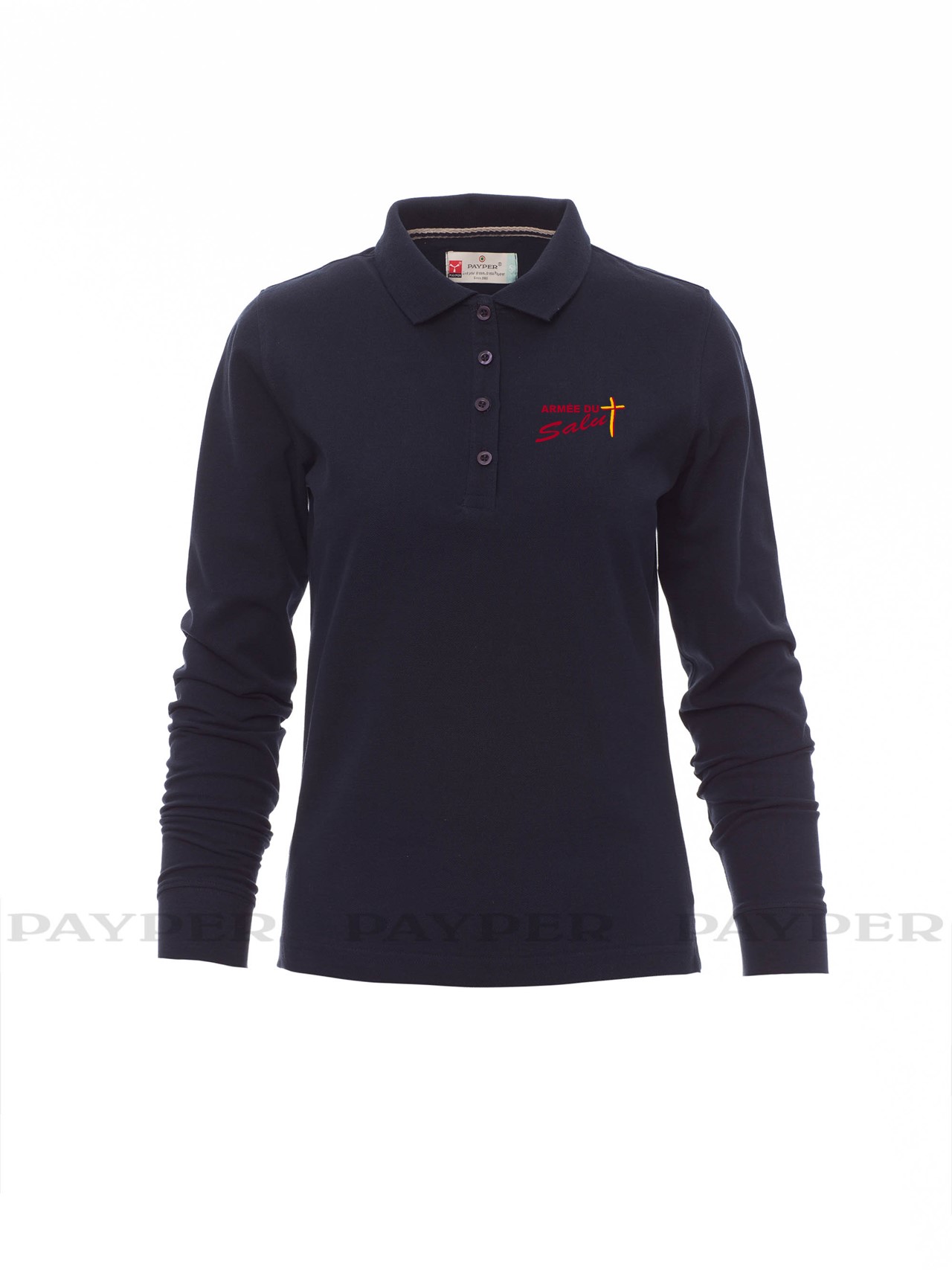 Polo pour femme cintré à manches longue et 4 boutons assortis effet perlé, col et bordure des manches en bord côtes, fentes latérales, coutures du col couvertes avec ruban en contraste, coutures stretch, ruban de renfort latéral.