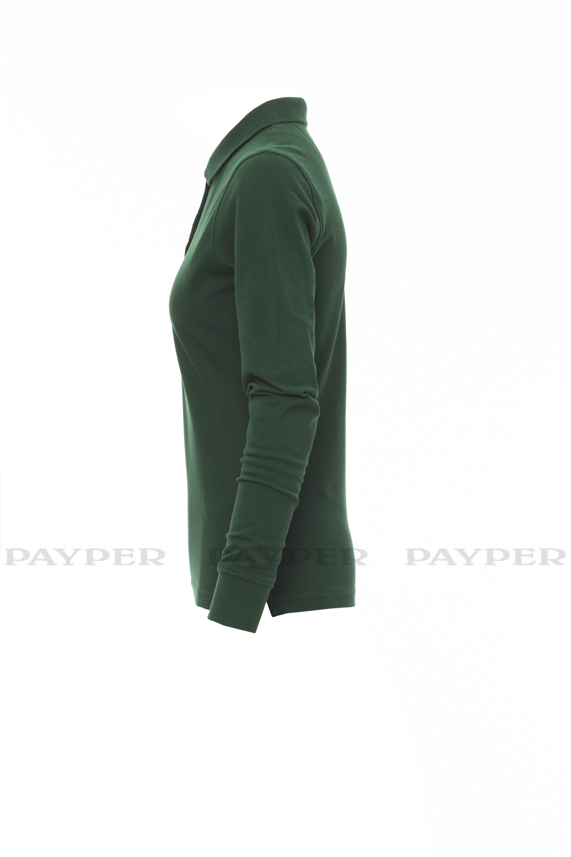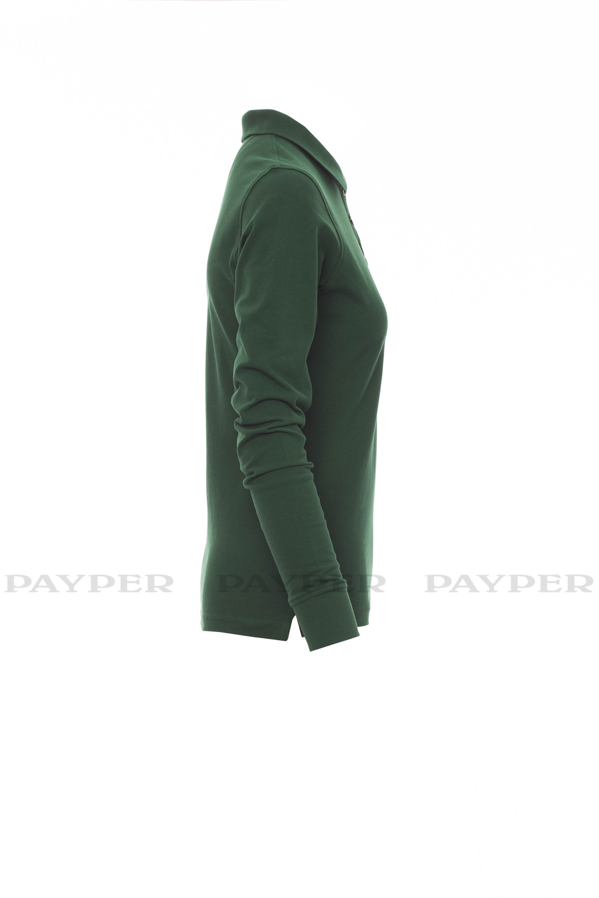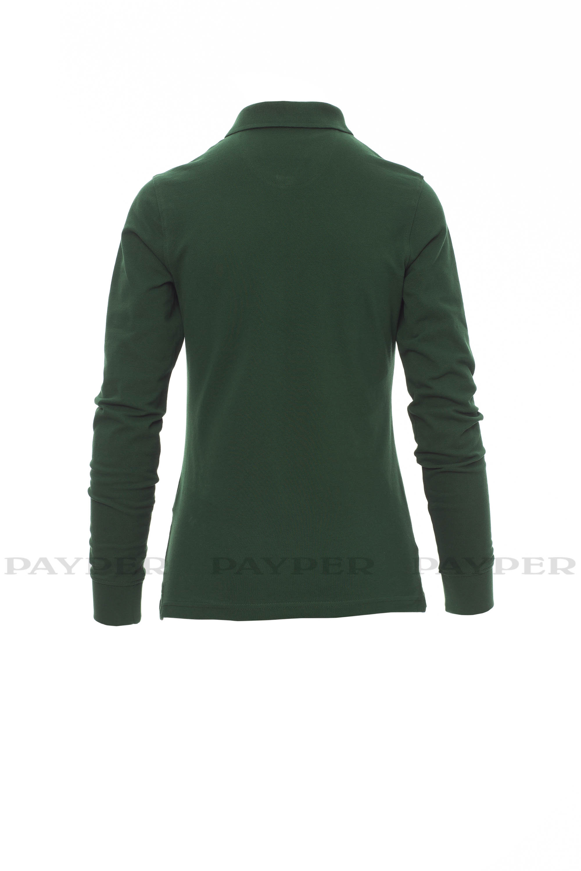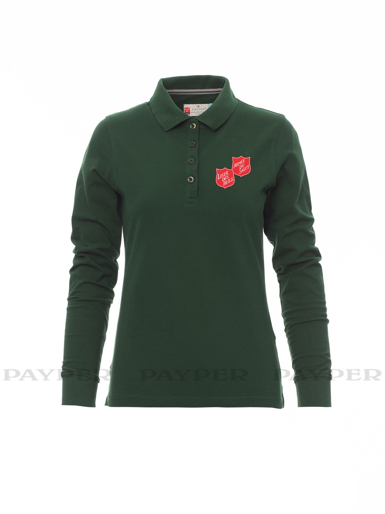 Polo pour femme cintré à manches longue et 4 boutons assortis effet perlé, col et bordure des manches en bord côtes, fentes latérales, coutures du col couvertes avec ruban en contraste, coutures stretch, ruban de renfort latéral.